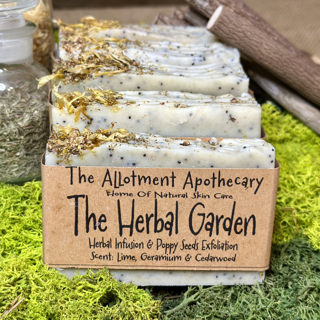 Experience the ultimate pampering with our Herbal Garden Soap, crafted with a blend of allotment herbs including thyme, chamomile, heather, and calendula. The addition of poppy seeds provides gentle exfoliation, perfect for removing dirt and grime after a day in the garden. Infused with a refreshing scent of lime, geranium, and cedarwood, this soap not only cleanses but also uplifts the senses. Treat yourself to a luxurious spa-like experience with our herbal garden soap.